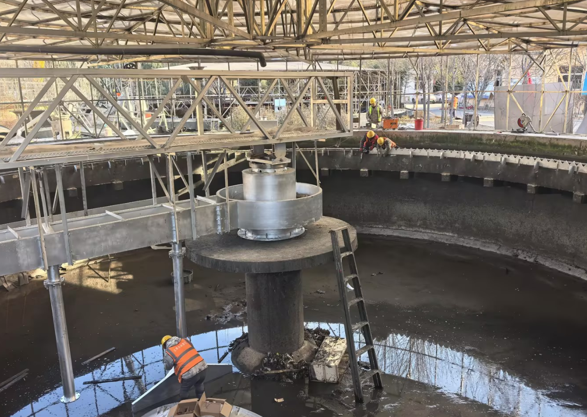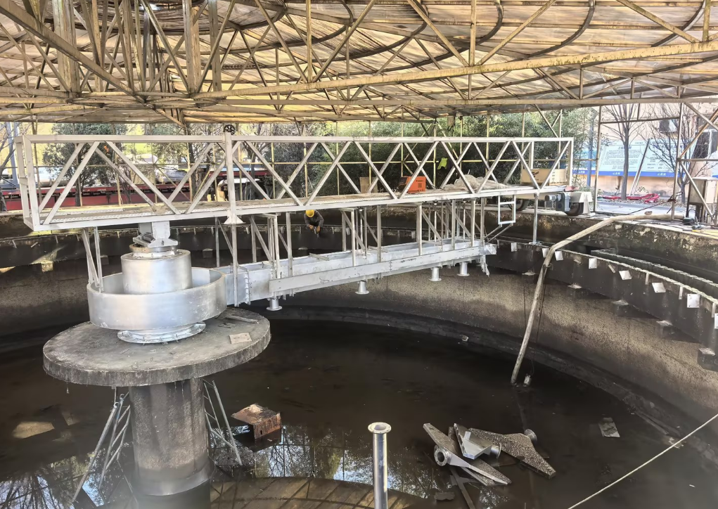 De perifere aangedreven slibschraper is een veelgebruikte vaste-vloeistofscheidingsapparatuur in secundaire sedimentatietanks en indikkingstanks van rioolwaterzuiveringsinstallaties. Het maakt gebruik van een perifeer aandrijfsysteem, dat een stabiele werking en een gelijkmatige krachtverdeling garandeert, waardoor het geschikt is voor langdurig continu gebruik in tanks met een grote diameter. De apparatuur concentreert het slib op de bodem van de tank met behulp van een schraapapparaat en verwijdert het tegelijkertijd via zuigleidingen, waardoor de slibverwijderingsefficiëntie en de kwaliteit van het afvalwater effectief worden verbeterd. De perifere aandrijfslibschraper heeft een redelijke structuur, een laag energieverbruik, uitstekende corrosieweerstand en betrouwbare operationele stabiliteit. Het kan zich aanpassen aan verschillende waterkwaliteiten en bedrijfsomstandigheden, waardoor het een van de belangrijkste apparaten is in gemeentelijke rioolwaterzuiveringssystemen en industriële afvalwaterzuiveringssystemen.